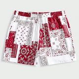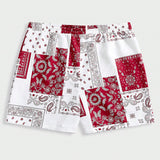 Manfinity rebelgame pantalones cortos casuales de talla grande para hombres, diseno suelto con estampado de flores de paisley rojo y blanco