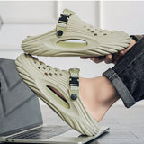 Sandalias de verano para hombre para exterior, suela de goma suave y gruesa, antideslizante, con punta cerrada para playa y senderismo, sandalias deportivas de talla grande