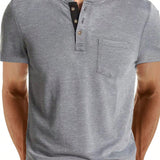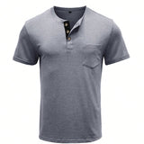 Camiseta henley de manga corta con bolsillo y cuello redondo para hombres de talla grande