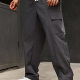 Manfinity legnd pantalones cargo casuales de pierna recta de talla grande para hombre con cintura con cordon y aberturas de pierna ajustables