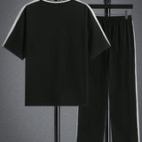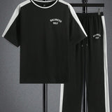 Manfinity homme conjunto de camiseta de manga corta con estampado de letras en bloques de color y pantalon largo para hombres de talla grande