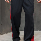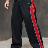 Manfinity legnd pantalones casuales rectos y sueltos con cintura con cordon y estampado de letras para hombres de talla grande