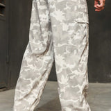Manfinity legnd pantalones casuales rectos y holgados con bolsillo de cargo y estampado de camuflaje para hombres de talla grande