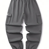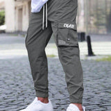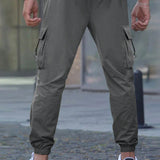 Pantalones casuales con cordon en la cintura para hombre, pantalones cargo versatiles para deportes con bolsillos con solapa y bajo con puno