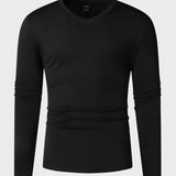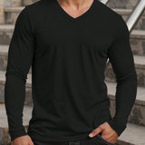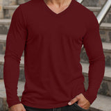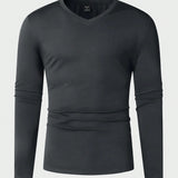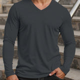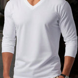 Manfinity homme camisetas casuales de manga larga con cuello en v de unicolor para hombres de talla grande