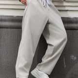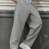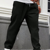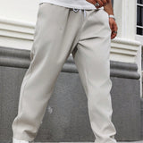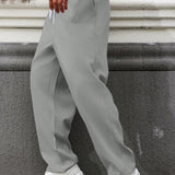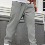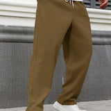 Manfinity homme pantalones casuales de unicolor con cordones y bolsillos delanteros, de estilo sencillo para uso diario para hombres