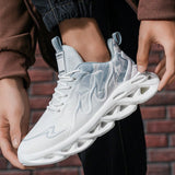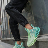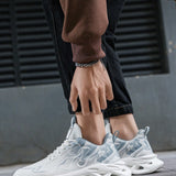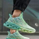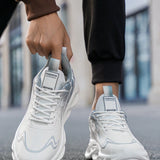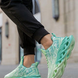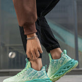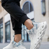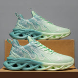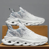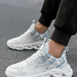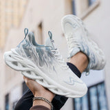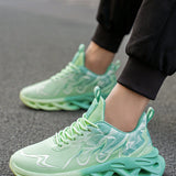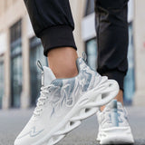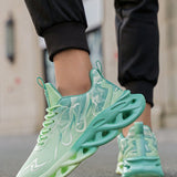 1 par de zapatillas deportivas con amortiguacion para hombre con diseno de rayas de llamas en la parte superior de malla tejida transpirable, para uso casual al aire libre y deportes