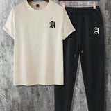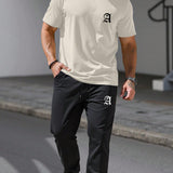 Manfinity homme conjunto de 2 piezas para hombre talla grande: camiseta casual y pantalones, uso diario minimalista y de moda