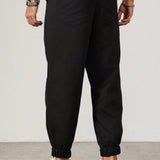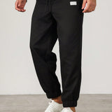 Manfinity homme pantalones largos casuales de talla grande para hombres con decoracion de remiendo y cintura con cordon