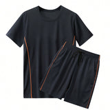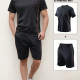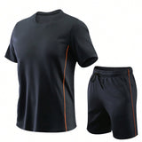 Conjunto de 2 piezas traje deportivo para hombre, camiseta de manga corta de secado rapido y pantalones cortos, para baloncesto, correr, fitness, badminton, atuendo casual para entrenamiento de verano