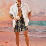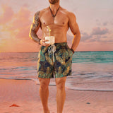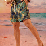 Easevo pantalones cortos holgados casuales con estampado floral tejido para hombres de talla grande