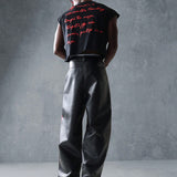 Sumwon top corto ajustado con borde deshilachado y estampado grafico con mangas abombadas
