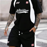 Conjunto de dos piezas de ropa urbana para hombre de talla 22 con estampado de letras, manga corta y pantalones cortos, para deportes al aire libre, regalo para el novio, uniforme especifico de baloncesto