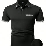 Manfinity homme camiseta polo de manga corta de talla grande para hombres, de unicolor, con parche y bolsillo en la parte delantera