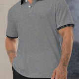 Manfinity homme camisa polo informal de manga larga con botones y contraste de colores para hombres de talla grande