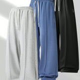 1 pieza pantalones casuales de deporte para hombres con cintura de cordon, pierna ancha y suelta, para primavera/verano