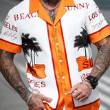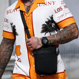 Manfinity rsrt camisa casual de manga corta con botones en la parte delantera, de unicolor y diseno de parches para hombres