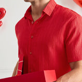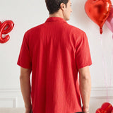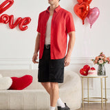 Manfinity modomio camisa casual de manga corta con cuello vuelto de corte slim para hombre de la marca manfinity modomio, adecuada para uso diario y para combinar con la pareja, regalo de san valentin, atuendos a juego para parejas, camisa roja para la