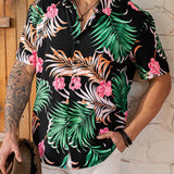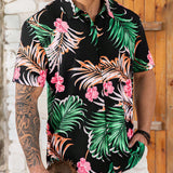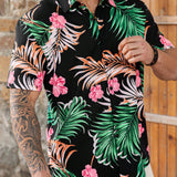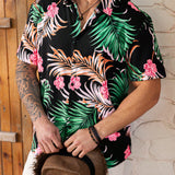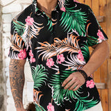 Manfinity resortease camisa de manga corta con botones frontales y estampado tropical de plantas para hombres de talla grande