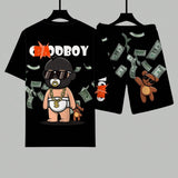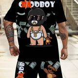 Conjunto de 2 camisetas casuales con estampado de dolar y "bad boy" para hombres talla grande, apropiado para todas las estaciones
