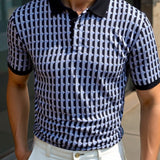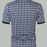 Manfinity homme camisa tipo polo casual para hombre con cuello alto, tejido de jacquard con patron geometrico de arte pop y corte aleatorio