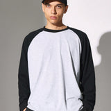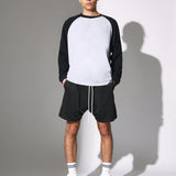 Sumwon conjunto de 2 piezas con camiseta de manga larga raglan de contraste y ajuste regular, y pantalones cortos con cordones