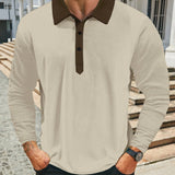Manfinity homme camisa polo de manga larga con cuello a contraste para hombres de talla grande