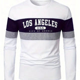 Camiseta de manga corta con cuello redondo y bloques de color en contraste, una versatil y elegante camiseta de color en contraste para hombres de talla grande