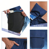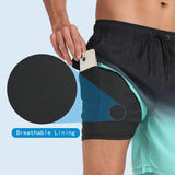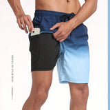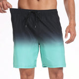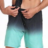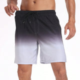 Pantalones cortos de playa de secado rapido con degradado de color para hombres - shorts de tabla con dos capas, elasticos, con bolsillos, transpirables y perfectos para actividades al aire libre / deportes / gimnasio en verano