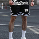 Manfinity sporsity pantalones cortos holgados casuales de talla grande para hombres con estampado de letras y cintura con cordon
