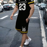Camiseta de cuello redondo con estampado del numero 23 en diseno elegante, conjunto casual de camiseta de manga corta de cuello redondo y pantalones cortos con bolsillos para hombres, traje casual con manga corta y estilo elegante