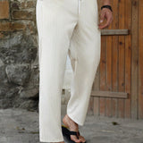 Manfinity resortease pantalones casuales con bolsillo y lazo delantero a rayas para hombres de talla grande, para uso diario