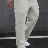 Manfinity homme pantalones casuales con bolsillos y cordones delanteros de unicolor para hombres de talla grande, para uso diario