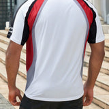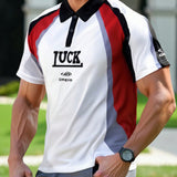 Manfinity homme camisa polo de manga corta con botones y estampado de letras de unicolor y parches para hombre talla grande