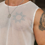 Manfinity resortease camiseta sin mangas casual de malla con cuello redondo y talla grande para hombre