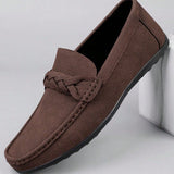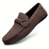Mocasines de piel de lujo para hombres, zapatos planos de estilo tejido de paja casual con banda elastica practica, zapatos formales para uso diario, boda, banquete, oficina y ocasiones de negocios en primavera y otono