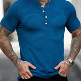 Homme camiseta de manga corta con cuello redondo de unicolor simple para hombre
