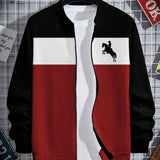 Manfinity dauomo sudadera con buzos con capucha casual con estampado de caballeria y cremallera delantera de color contrastante para hombres de talla grande