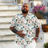 Manfinity rsrt camisa de manga corta con botones y estampado floral completo, de corte ajustado y talla grande, en estilo casual y de vacaciones, adecuada para exteriores, vacaciones, citas, fiestas, gran regalo para el novio
