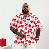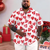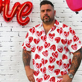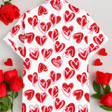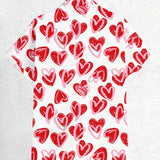 Manfinity homme camisa de manga corta con botones y ajuste regular de talla grande con estampado de corazones de grafiti, adecuado para parejas en citas y reuniones, gran regalo para novio