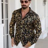 Camisa de manga larga con estampado floral y lamina de oro para hombre, camisa de fiesta