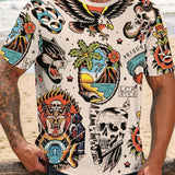 Rsrt camiseta casual de manga corta y cuello redondo con estampado para hombres de talla grande, adecuada para vacaciones