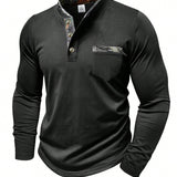 Camisa polo de manga larga con estampado de patchwork casual para hombre