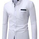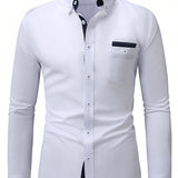 Manfinity bizformal camisa casual de manga larga con ribete de contraste para hombre