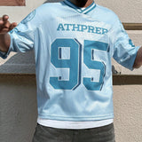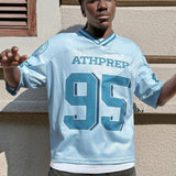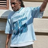 Streetez camiseta de manga corta con cuello en v, de malla suelta y estampado de letras y numeros para hombres