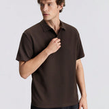 Ontre camisa polo casual de manga corta con cuello vuelto de unicolor para hombre