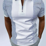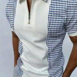 Camisa polo de manga corta de ajuste delgado, transpirable, con contraste de color a cuadros, para hombres, primavera/verano 2025