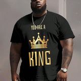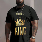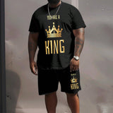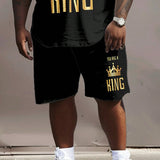 Camiseta y pantalones cortos casuales de calle para hombres de talla grande con texto impreso "eres un rey"