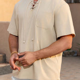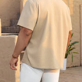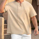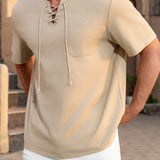 Manfinity resortease camisa casual de manga corta con amarre delantero de unicolor para hombres de talla grande