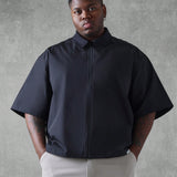 Sumwon camisa de manga corta con cierre y estampado grafico en la espalda, corte boxy talla grande